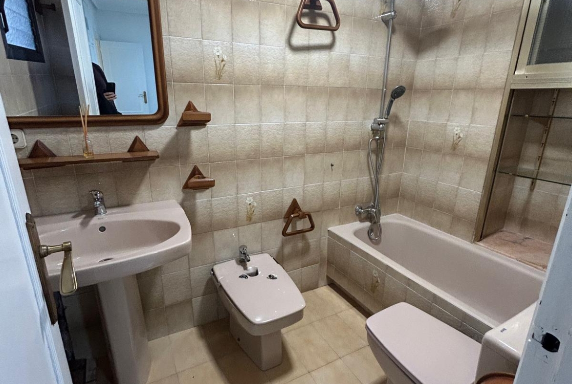 Vivienda de 100m2 a la venta junto Piso Azules. La vivienda se encuentra lista para entrar a vivir gracias a su buen estado general. Distribuido en tres habitaciones (una doble y dos sencillas) y dos baños completos, cocina con acceso a galeria y amplio salón.